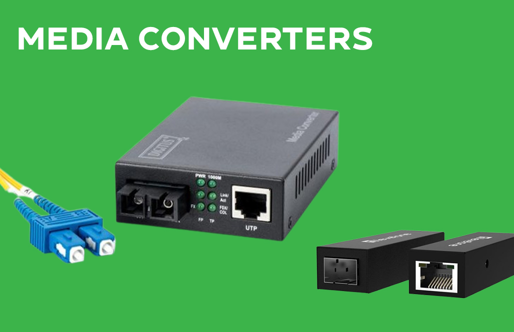 Media converters not only bridge large distances but also connect different media types such as copper and fiber optic, or multimode and singlemode. HDBaseT transmitters and receivers enable the transmission of 4K video, USB, Ethernet, control signals, and power over a single Cat5e cable—ideal for large conference rooms. We offer a suitable solution, whether you want to connect older installations to modern networks, extend the range of your network, or transmit high-resolution audio and video signals without loss.